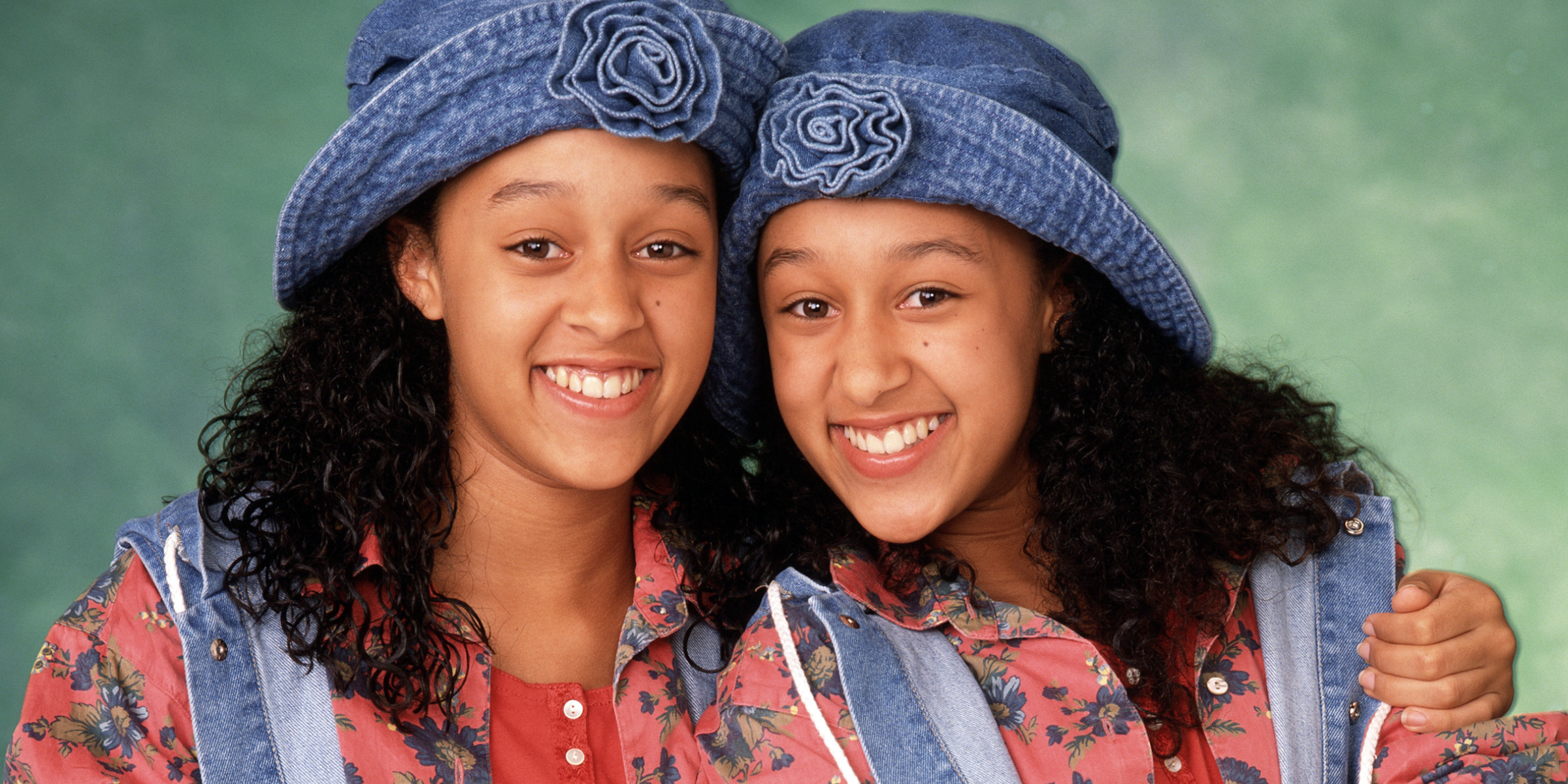 Tia and Tamera Mowry posing as their characters from "Sister, Sister" in the 90s. | Source: Getty Images