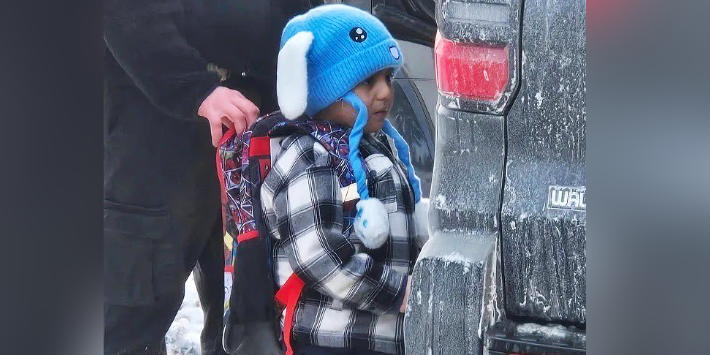 Liam Conejo Ramos is seen wearing his rabbit-eared hat and backpack as ICE agents take him from his Minnesota home. Days later, he lies in his father's arms inside a Texas detention center | Source: X/RepMcClellan